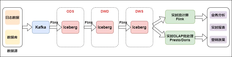 随着实时 OLAP 技术的发展,目前开源的OLAP引擎在性能,易用等方面有了很大的提升,如Doris、Presto等,加上数据湖技术的迅速发展,使得流批结合的方式变得简单。